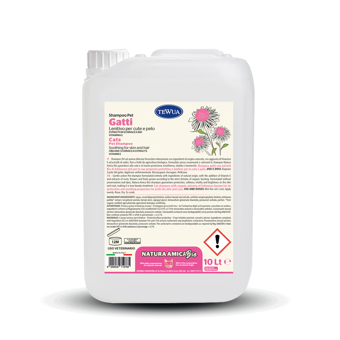 Cat shampoo with organic bio extracts of Echinacea known for its protective and soothing properties for both the skin and coat.